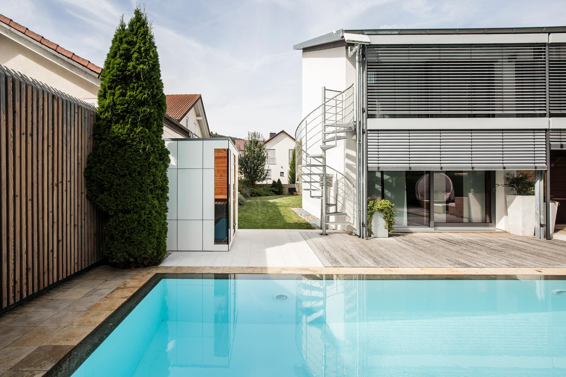 Mit einer Gartensauna verbinden Sie das Saunaerlebnis auf wirkungsvolle Weise mit den Elementen und Kräften der Natur: im Sommer durch die Abkühlung im Pool oder Schwimmteich und im Winter mit einem Sprung in den Pulverschnee!