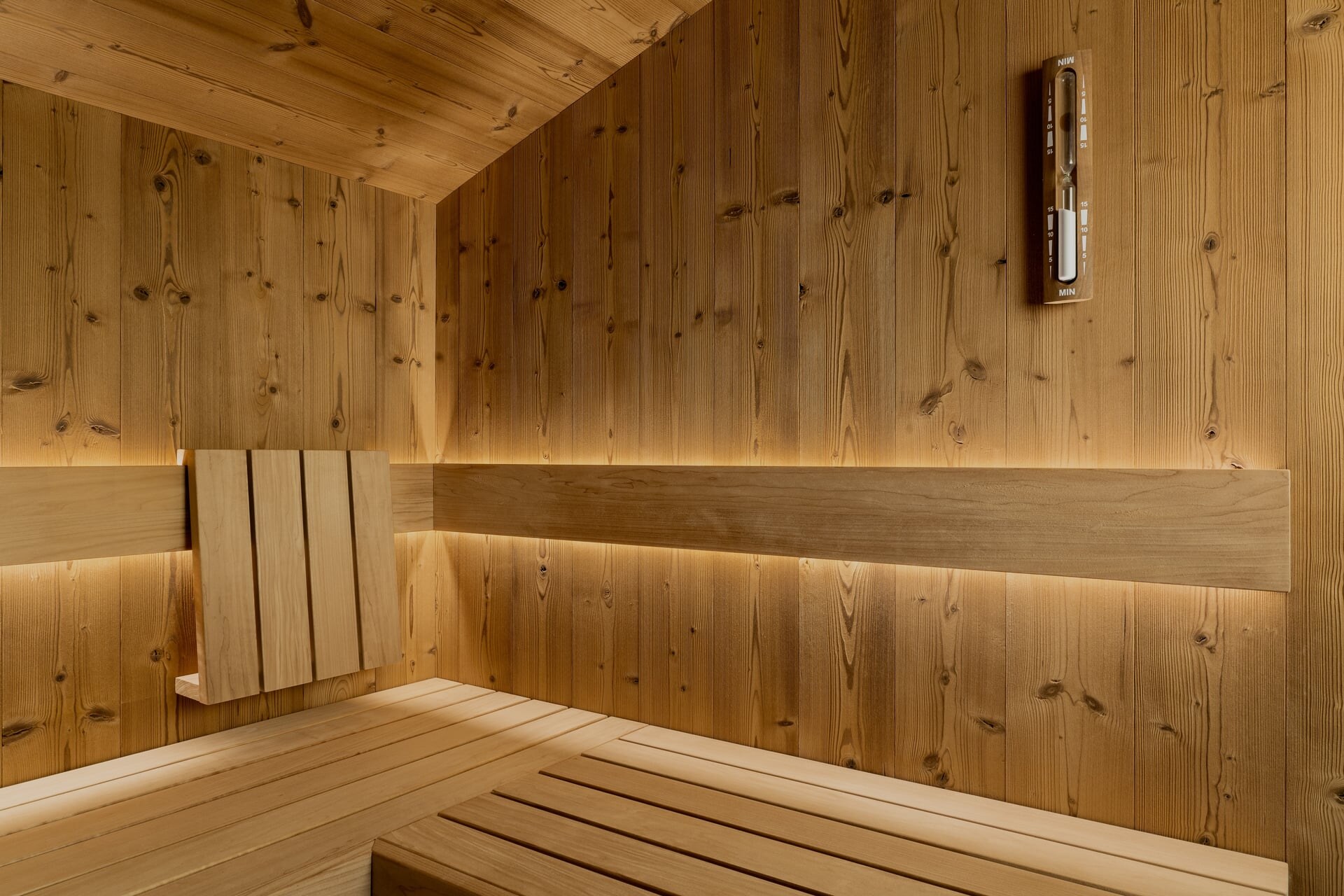 In diesem außergewöhnlichen Private-Spa sorgen Dampfdusche, Sauna und freistehende Badewanne für ein abwechslungsreiches wie ganzheitliches Entspannungs-Erlebnis in modernem Ambiente mit alpinem Charme.